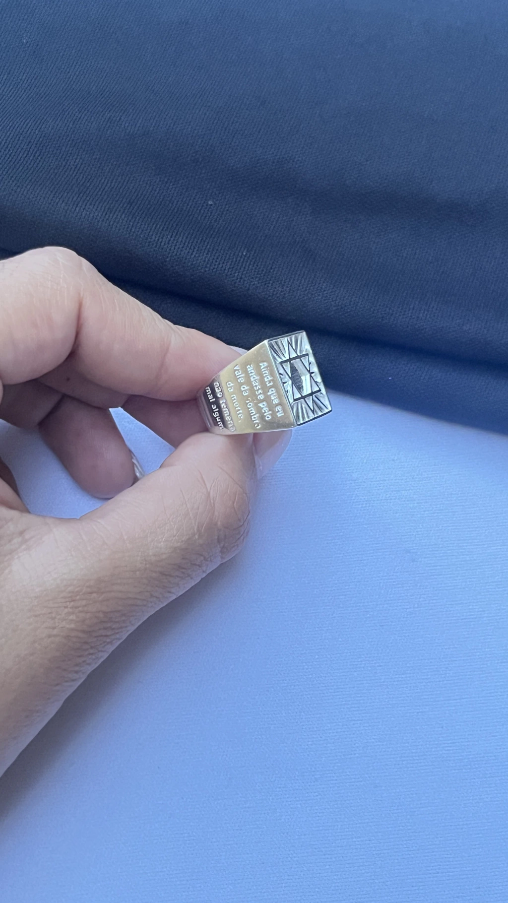 Cada detalhe foi desenhado para refletir luz de forma única, destacando as linhas geométricas que compõem o símbolo. O resultado é uma joia robusta, elegante e atemporal, capaz de transformar qualquer composição, seja no dia a dia ou em ocasiões especiais.